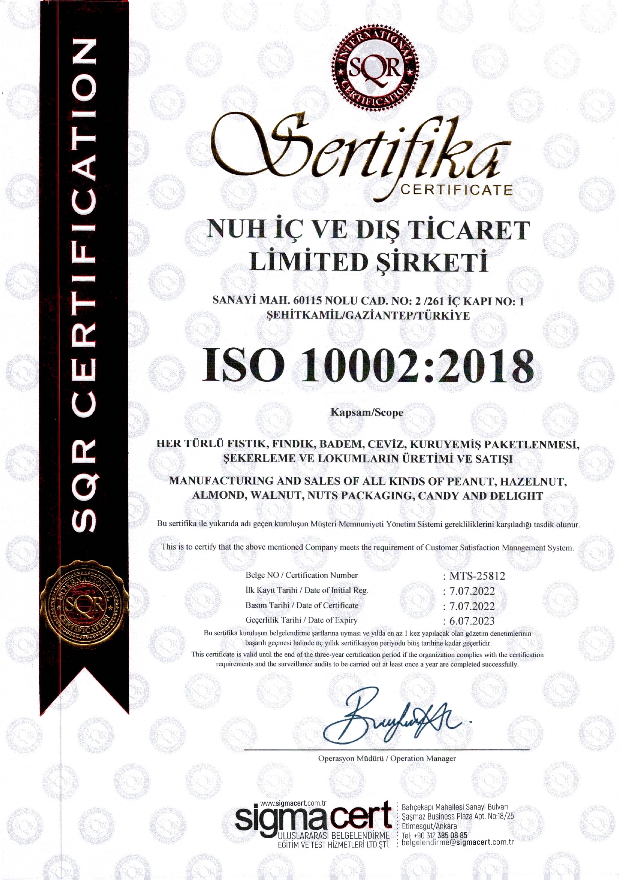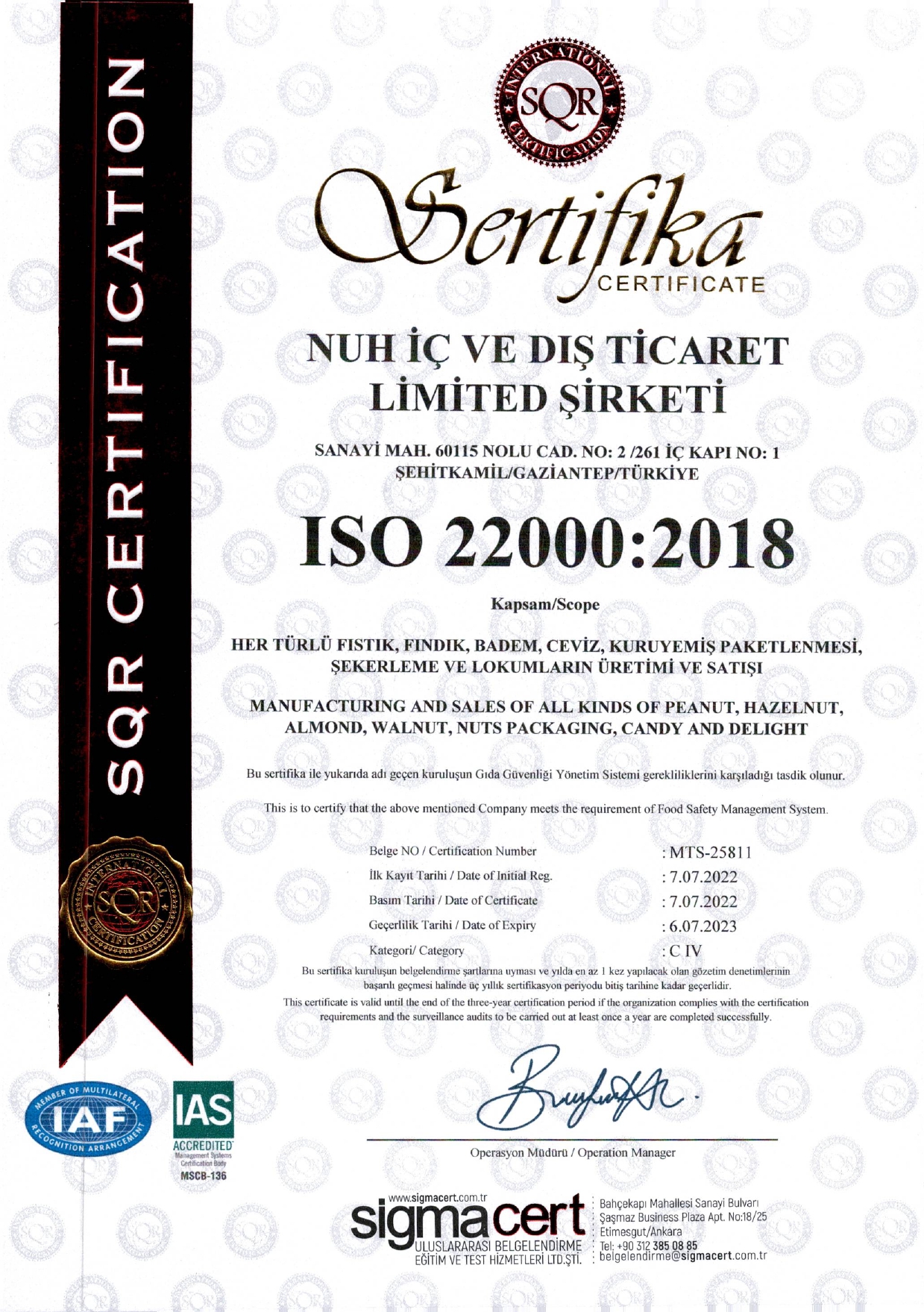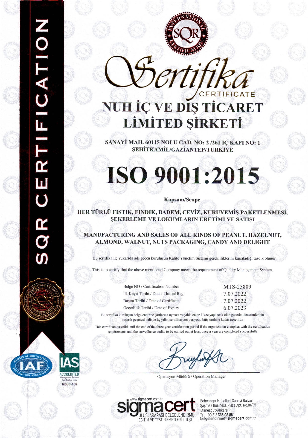 NuhTrade iç ve dış ticaret olarak kalite sertikalarını alarak taüm dünya ile ticaret yapmaya hazırız.